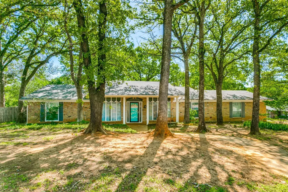 Welcome to your little slice of heaven in the middle of the metroplex. This home is situated on a large corner lot, in a quiet, heavily treed neighborhood with easy access to 183 Hwy. This is the largest lot and sq footage you will find, for this price point, in this area. It is by far the most bang for your buck!Walking up you will notice the great curb appeal, recently painted exterior with a covered front porch. Once in the home you will see updated wood laminate flooring. The front room, off the entry, is the formal living and dining area with a bay window and a great view of the neighborhood. Stepping into the large den you can imagine cozy evenings or your morning coffee snuggled by the fire with a clear view of the backyard. This home has a fantastic eatin kitchen with plenty of cabinet space, countertops and breakfast nook. All of the bedrooms are a great size with spacious closets but...the primary bedroom is everything you are looking for. This large bedroom has a ton of natural light, walkin closets and the bathroom retreat you deserve! It is a spa day, treat yourself, shut off from the world, kind of vibe. It will not disappoint! With the oversized corner lot, the backyard is waiting for an owner who loves to garden and be outdoors. It is perfect for kids and pets. This home is being sold As Is and the price has been adjusted to reflect that. Some of the flooring in the den was damaged by an Air conditioning leak. The leak has been fixed but the flooring needs to be tended to. Seller is willing to have flooring fixed with an acceptable offer.