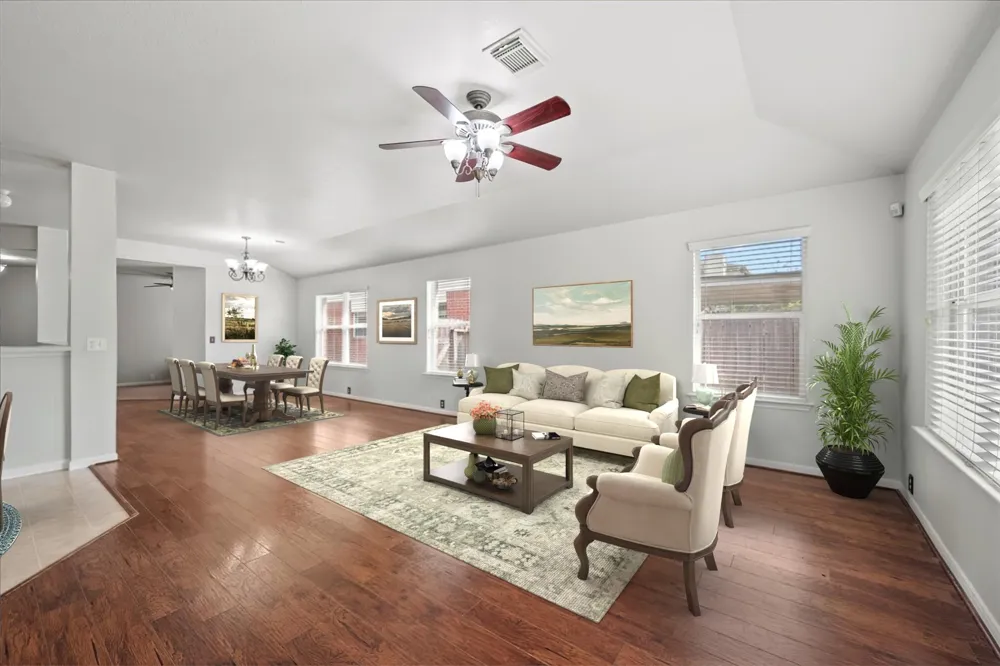 Welcome to 17535 Prospect Meadows Dr! Nestled in the charming Canyon Lakes Village, this stunning home boasts a lake view and a thoughtfully designed open-concept floorplan. Featuring 3 bedrooms, 2 baths, and a versatile flex room, this space is perfect for your lifestyle needs. The primary bedroom is a true retreat, complete with a spacious walk-in closet and an en-suite bath. Two secondary bedrooms share a beautifully updated full bath. The kitchen offers ample cabinet space and seamlessly flows into the dining and living areas, making it an ideal setting for entertaining friends and family. With a family-friendly atmosphere and access to vibrant community amenities, this home is ideal for those seeking an active lifestyle. The perfect blend of comfort and convenience, all while being surrounded by highly acclaimed Cy-Fair ISD schools. Enjoy serene views and modern living in this delightful home—schedule your tour today!