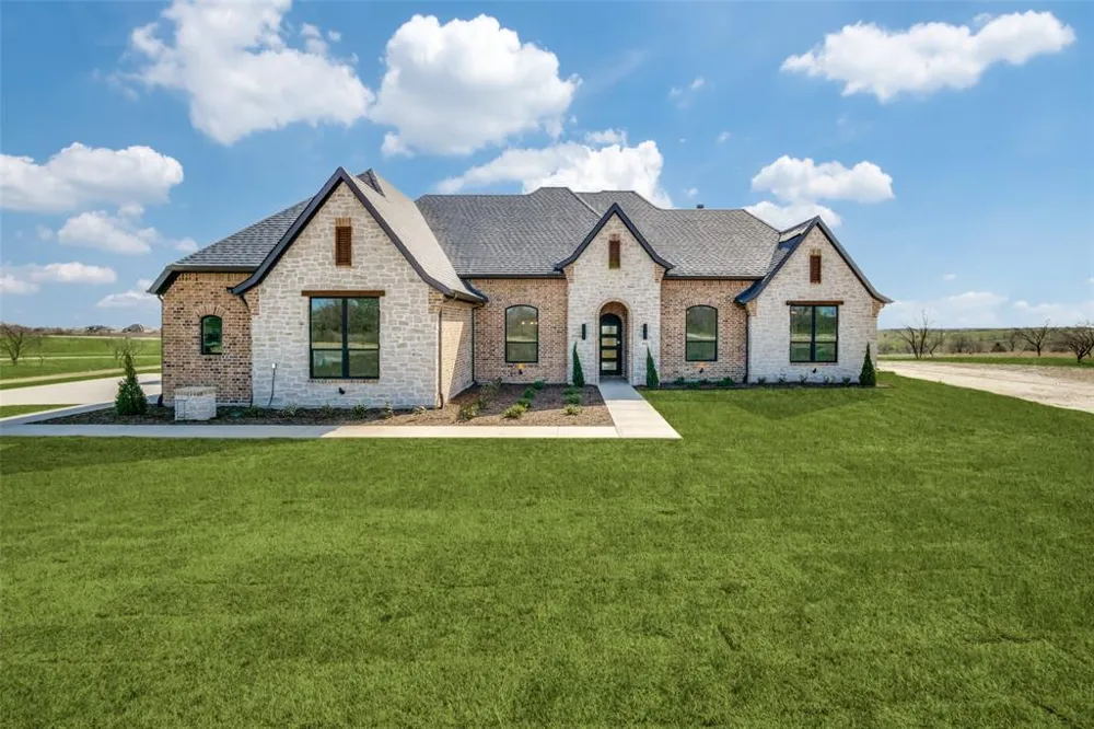 Tucked inside the Rolling Hills of Bear Creek Ranch this 4 Bedroom 3.5 bath 3 Car Garage is stunning. All Brick and Stone exterior on this 2 acre corner lot with beautiful views all the way to downtown Fort Worth won't disappoint. Decorative Lighting and a smart floorpan with Open Concept Living, Spacious Pantry+2nd Ensuite Bedroom+Patio.Visit the Caliber Homes TX Model Home just inside the gates of Bear Creek Phase III at 4008 Grizzly.Self Tour Now available.Ask about our incentives and other available homes from this builder. Buyer or buyers agent to verify all information.The Preferred Lender on this property is Randy Atkinson at Synergy One Lending.Agent related to owner.