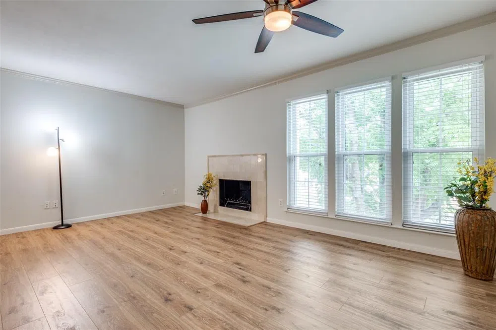 Beautiful updated condo in Preston Hills Condominium gated community just minutes from Tollway, 635 and 75, Galleria Mall, Village on Parkway, Whole Foods, AMC Theater, restaurants, shopping & entertainment centers, and future Dallas Midtown District. Kitchen has new cabinets, Carrara Marble counters, Farmhouse sink, and stainless steel appliances. Refrigerator and stackable washer & dryer are included. Spacious living room with tons of built-in shelves & cabinets, beautiful wood-look laminate flooring throughout, and wood burning fireplace. Large primary bedroom with private balcony that overlooks peaceful courtyard. Preston Hills Community offers an olympic size community pool, walking paths, outdoor playground and tons of mature trees and grassy areas. The community is on a commercial electric plan with a central water heater making electricity less expensive. Water is included in HOA paid by the owner. 1 covered carport space is included.
