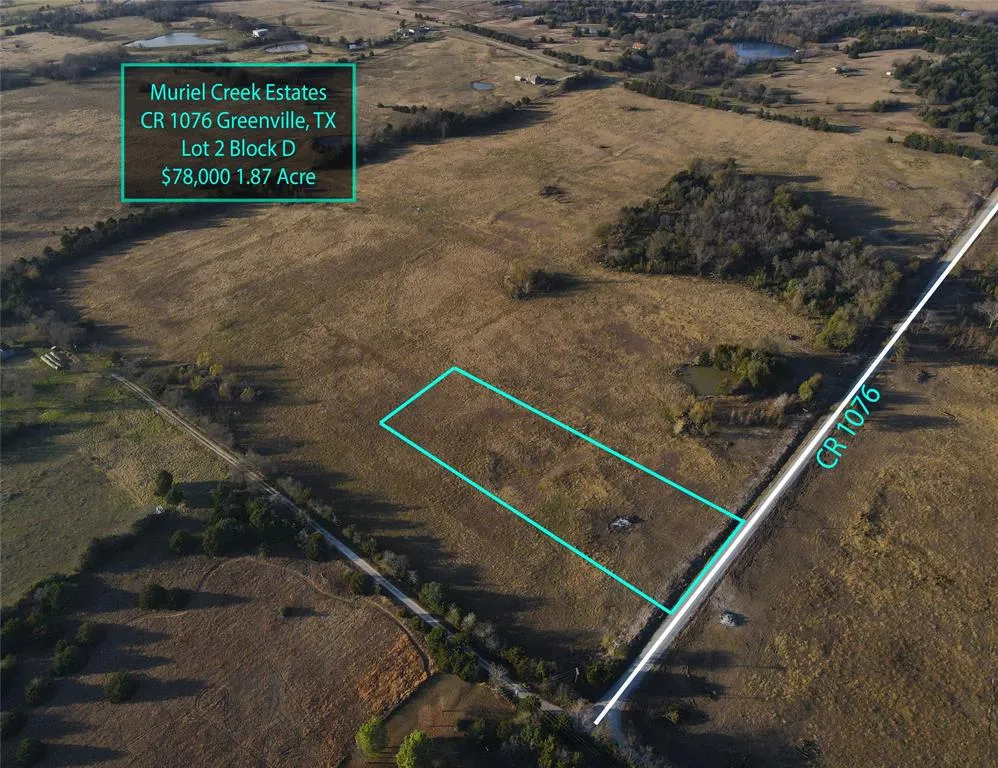 Welcome home to your new countryside dream! Lot 2 Block B is 1.87 Acre lot to call this place home. Come here with your build plans and your country critters. Deed restrictions with mobile homes are not allowed. 1500 sqft minimum site built home only. Water and Electric is being installed at the front of the lot. Plenty of other tracts and lots available to choose from so bring friends and family! 30 mile drive to McKinney and 10 miles to Greenville yet in the middle of the country. Happy to assist with any purchase here at Muriel Creek estates. 15% down available with a regional bank